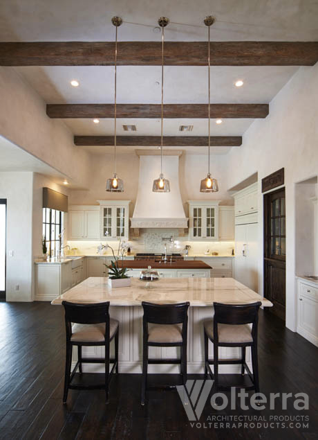 Traditionally used for structural support, wood beams have become a beautiful architectural addition to homes all over the US. Natural wood beams can bring out the character of a home and improve the feel of kitchens, dining, rooms, living rooms, and any other space in your home. At Volterra, we create beautiful wood beams to add character to your home. Here are four architectural elements that natural wood beams can bring into your home. To see how wood beams can improve your home, check out our collections today!